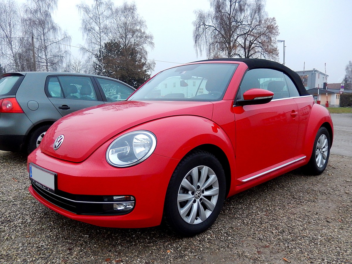 VW-Beetle Cabrio, bringt etwas Farbe in die trübe Herbstlandschaft; 131205