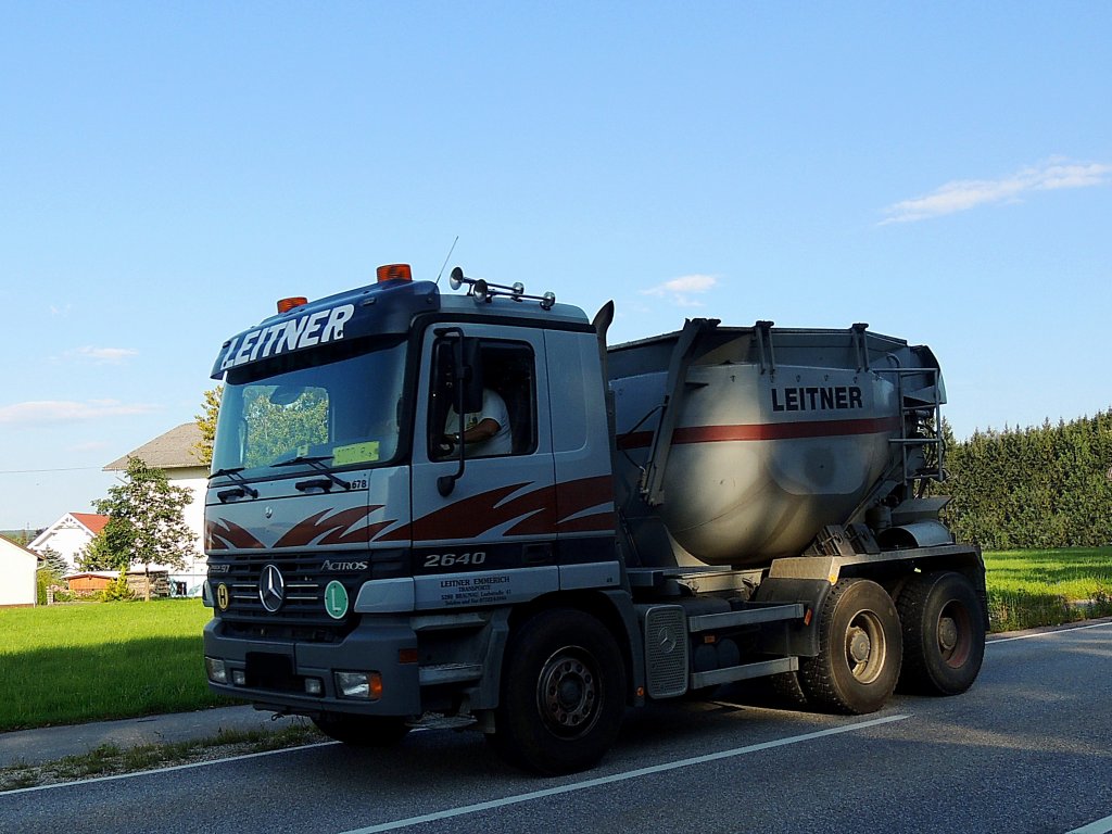 ACTROS-2640 mit Asphaltmulde fährt am Abend wieder Richtung Betriebsstätte; 120731