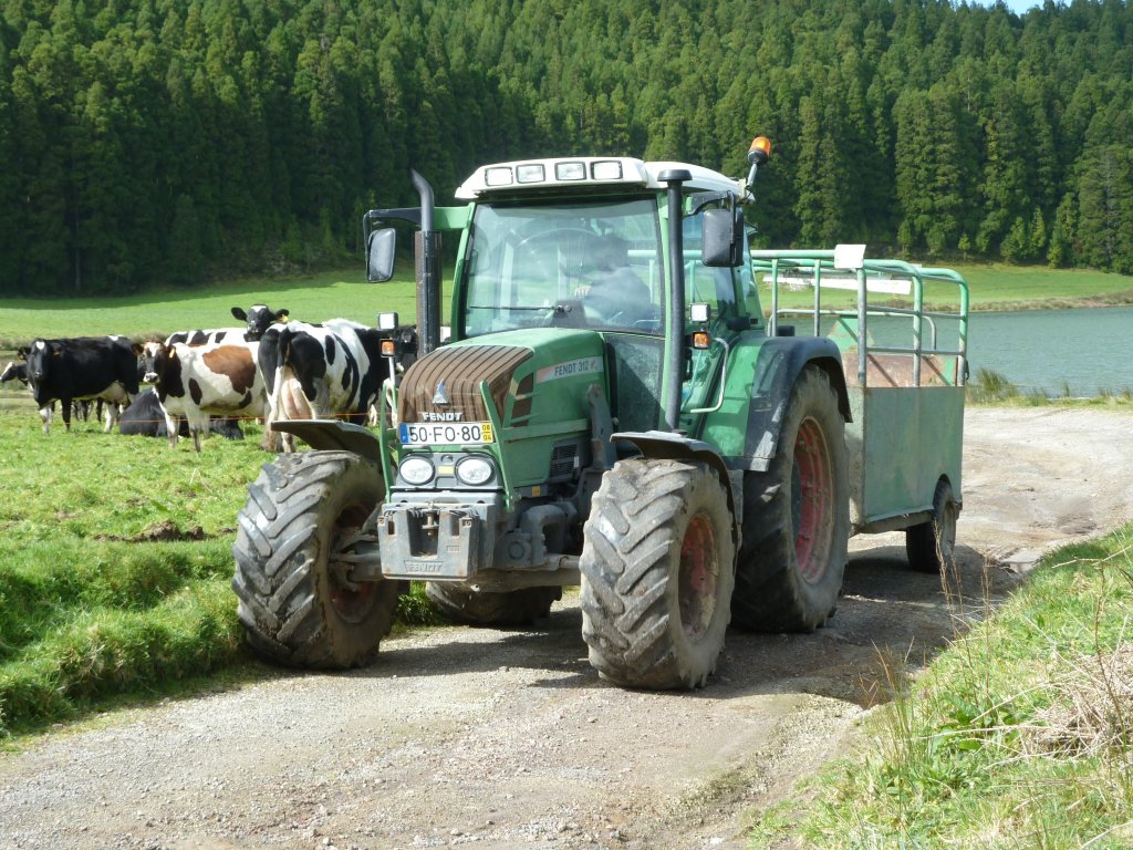 Fendt 312, ein deutsches Produkt arbeitet auf der Azoreninsel Sao Miguel, Februar 2013