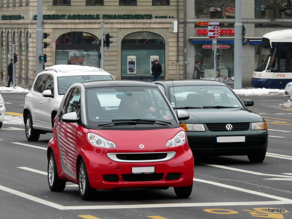 Schwarz Roter Smart unterwegs in der Stadt Lausanne am 16.02.2013