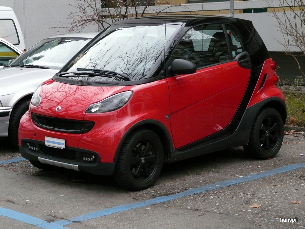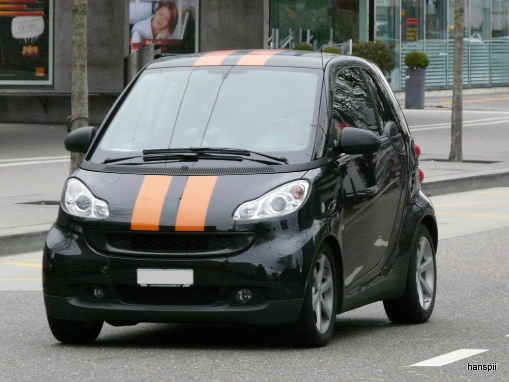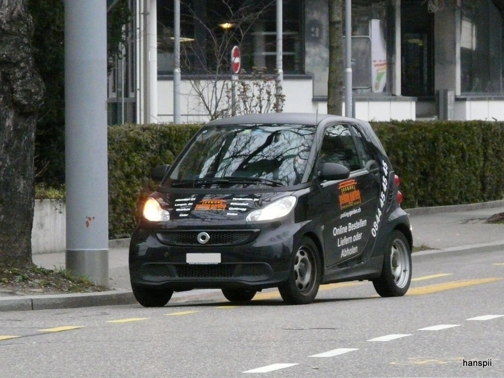Schwarzer Smart mit Werbung in Zürich Altstetten am 01.01.2013