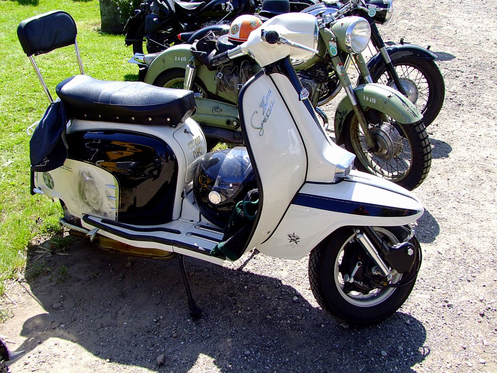 Lambretta X150 Special, hat sich zu einer Gruppe Zweiradoldtimer gesellt; 120812