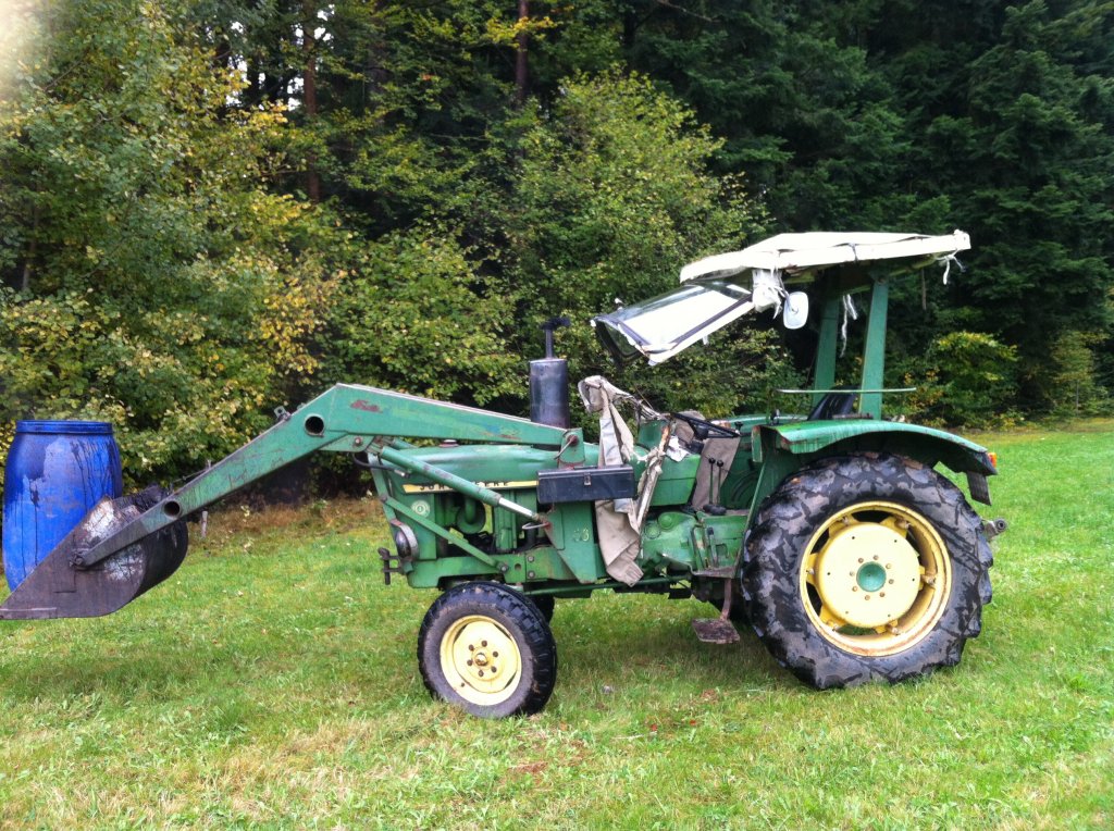 John-Deere Frontlader in Calw an einem Wald-stück am 14.10.2012