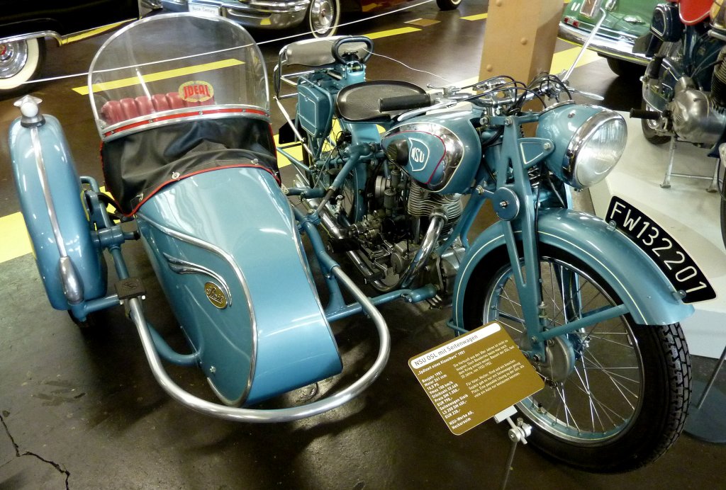 NSU Konsul II, Baujahr 1953, 1-Zyl.4-Takt-Motor mit 498ccm und 21,5PS, Vmax.122Km/h, mit Steib-Seitenwagen S350, Automuseum Schramberg, Mai 2012