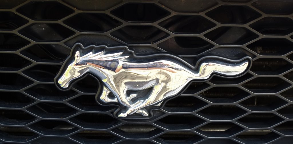 Ford-Mustang, Logo des 1964 begonnenen Sportwagenbaus der Firma Ford in den USA, Juli 2013