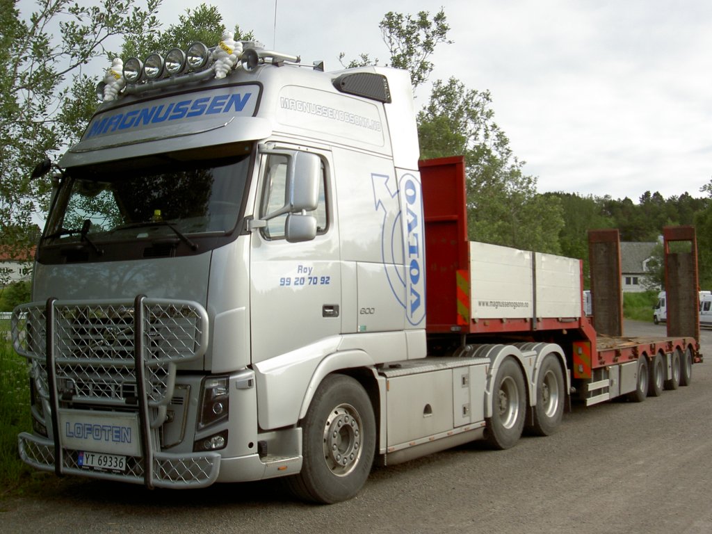Volvo FH, 441 Kw, mit Schwerlastauflieger, gesehen bei Kabelvaag auf den Lofoten (30.06.2013)