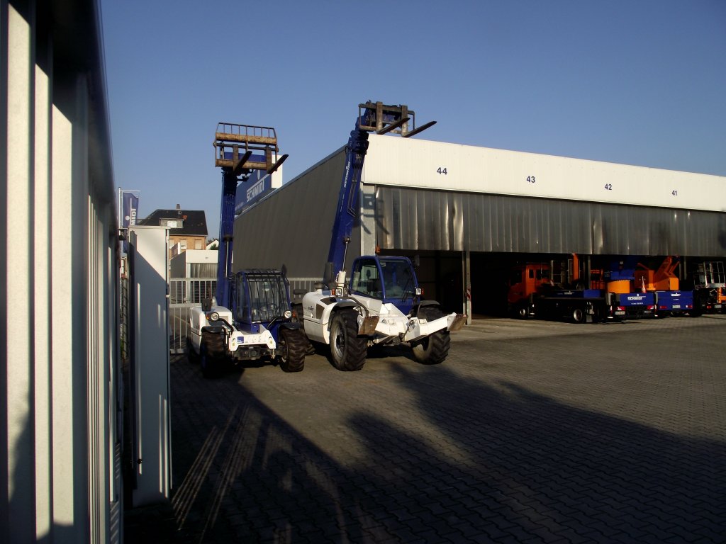 Zwei Teleskoplader der Firma Schmidt am 08.07.13 in Neu-Isenburg durch den Zaun fotografiert