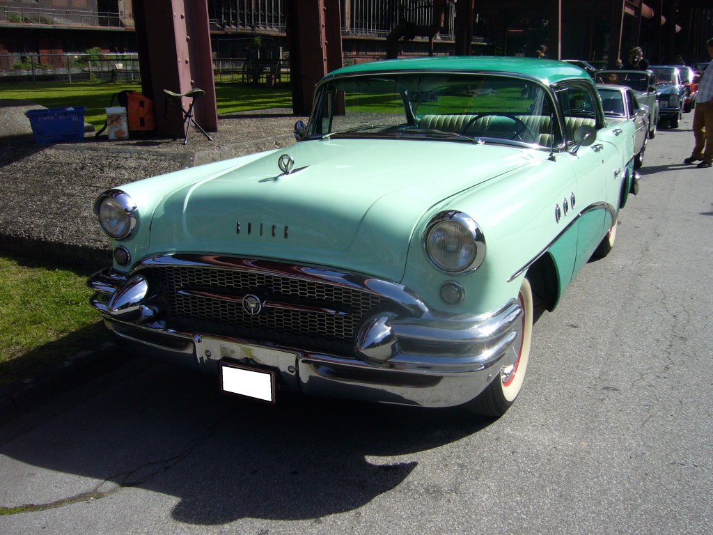Buick Special 40 Riviera Hardtop Sedan des Jahrganges 1955. Die Modellreihe Special 40 rangierte am unteren Ende der Buick Modellreihen. Darüber standen Super 50, Century 60 und als Spitzenmodellreihe Roadmaster 70. Von der abgelichteten Karosserievariante verkaufte Buick in diesem Modelljahr 66.409 Autos. Der Einstiegspreis lag bei US$ 2.409,00. Motorisiert ist dieses Modell mit einem V8-motor der aus 4.324 cm³ Hubraum 188 PS leistet. Oldtimertreffen Kokerei Zollverein am 02.06.2013.