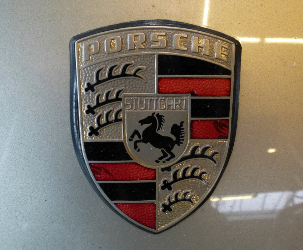 Porsche Firmenwappen, verwendet seit 1953, der Sudetendeutsche Ferdinand Porsche gründete 1931 die Firma, der Fahrzeugbau begann nach dem II.Weltkrieg, Juni 2013