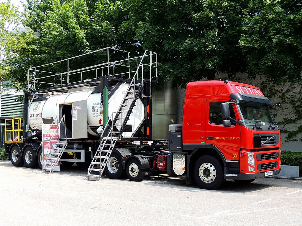 MAN TGA28.430 D20-commonrail bringt einen leeren Austauschcontainer; 130418