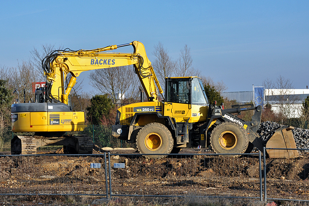 Komatsu Radlader WA 250 PZ und Komatsu Raupenbagger PC 228 US in Weilerswist - 18.02.2013