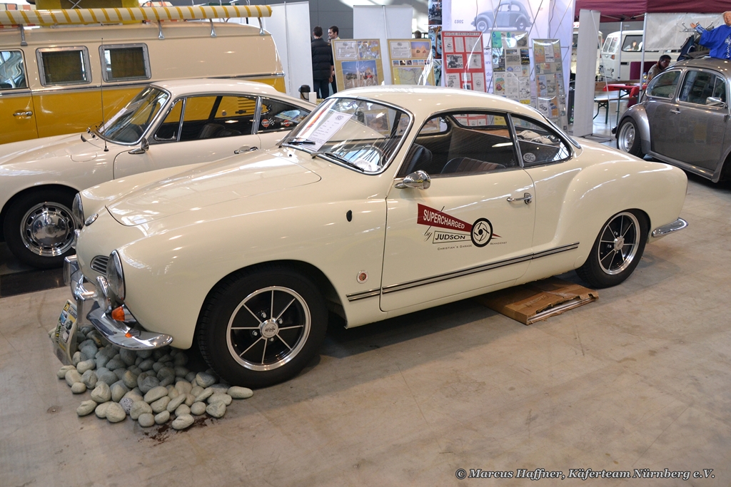 Ein Karmann-Ghia, gesehn am 10. März 2013 bei Retro Classics in Stuttgart.