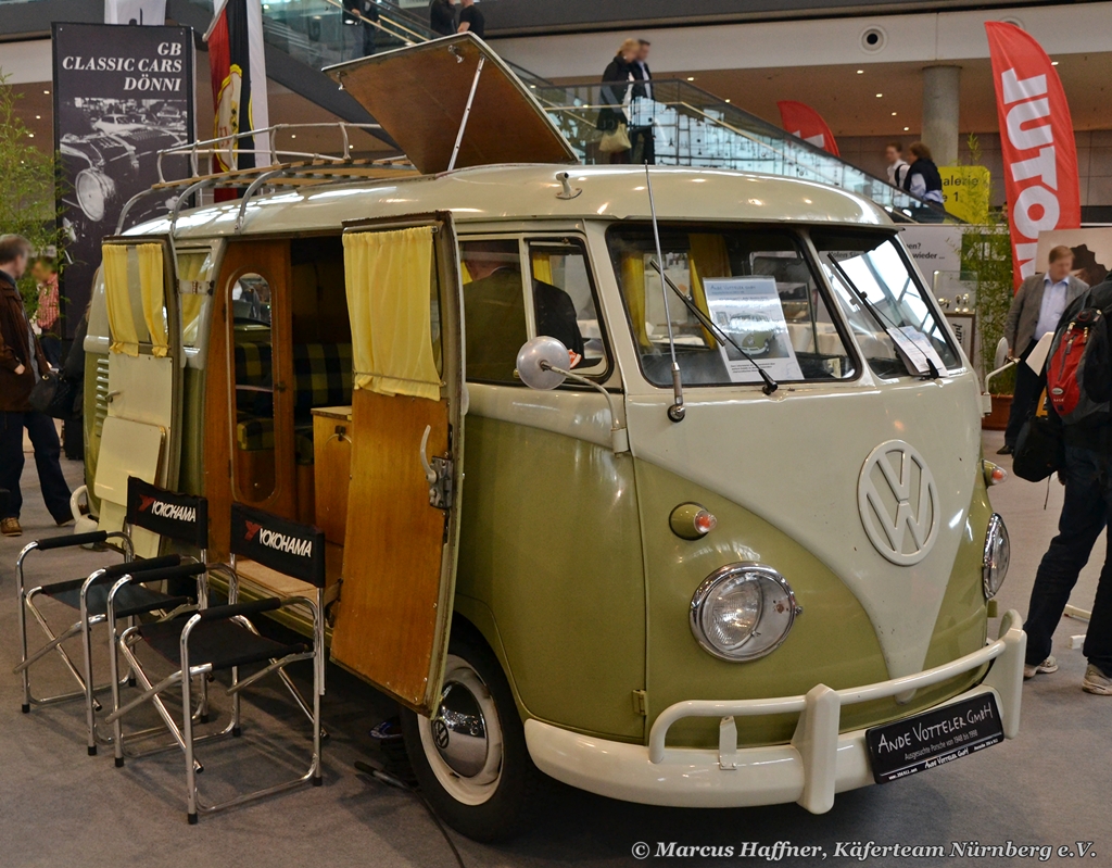 Ein T1 Bullibus mit Campingausstattung, gesehn am 10. März 2013 bei Retro Classics in Stuttgart.