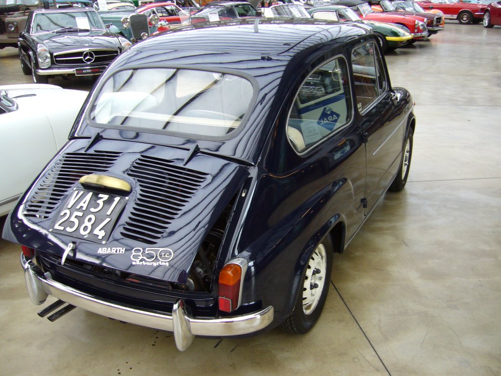 Abarth 850 TC "Nürburgring". 1963 - 1965. Auf Basis des bereits 1955 vorgestellten Fiat 600 baute Carlo Abarth die legendären TC-Modelle (Turismo Competizione) auf. Hier wurde ein 850 TC abgelichtet. Seitdem ein 850 TC im Jahr 1963 ein Langstreckenrennen auf dem Nürburgring gewann, trug der 850 TC den Namenszusatz "Nürburgring". Der 847 cm³ 4-Zylinderreihenmotor leistet 52 PS. Dieser 850 TC trägt noch seine ursprünglichen, alten italienischen Kennzeichen aus dem Bezirk Varese/Lombardei. Classic Remise Düsseldorf am 24.03.2013.