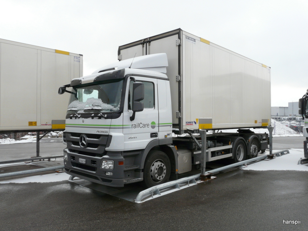 Mercedes Benz Actros Sattelzug mit Betonmischerauflieger ist mit seiner Ladung unterwegs zu einer Baustelle. 18.03.2013