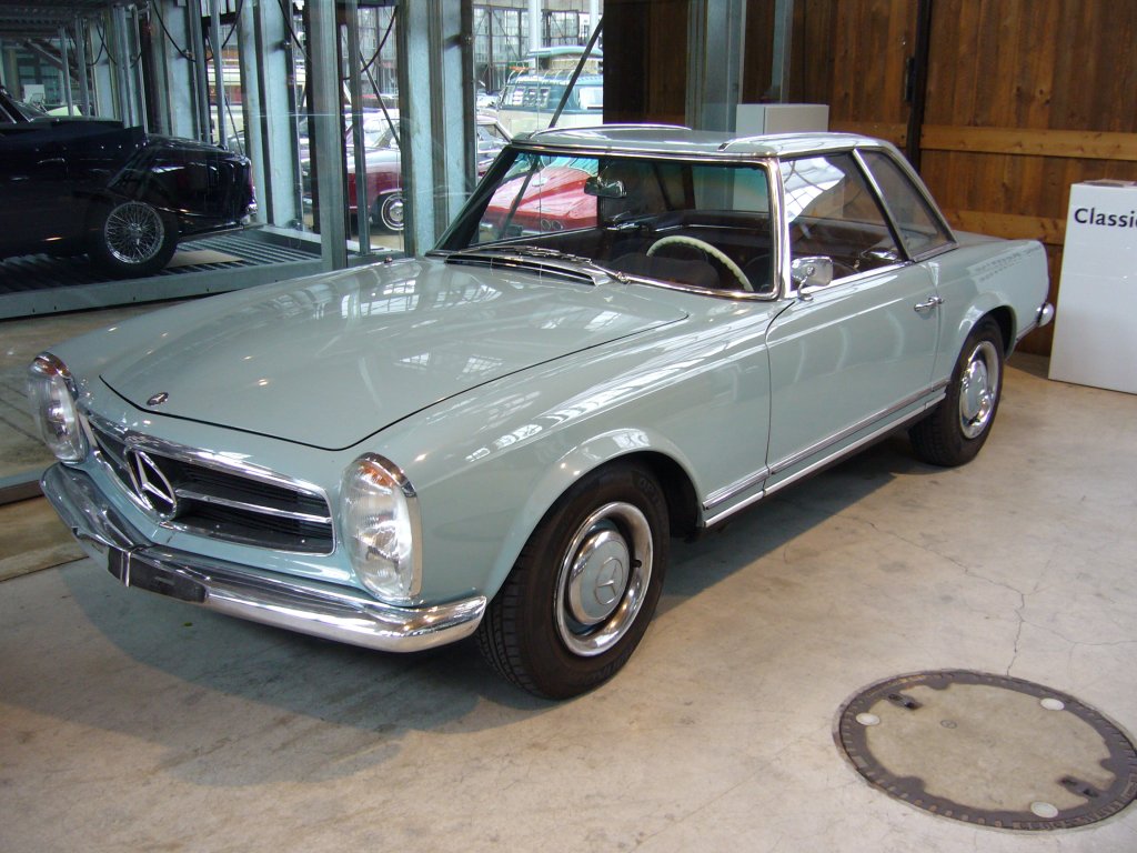 Mercedes Benz W113. 1963 - 1971. Die "Pagode" wurde auf dem Genfer Salon vorgestellt und ging noch im gleichen Jahr in die Produktion. Hier wurde ein 230 SL (gebaut von 1963 - 1967) abgelichtet. Der 6-Zylinderreihenmotor leistet aus 2.306 cm³ Hubraum 150 PS. Classic Remise Düsseldorf am 24.03.2013.