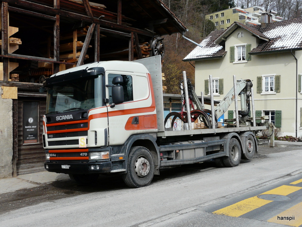 Scania 124G 470 Holztransporter abgestellt in Kriens-Obernau am 16.03.2013