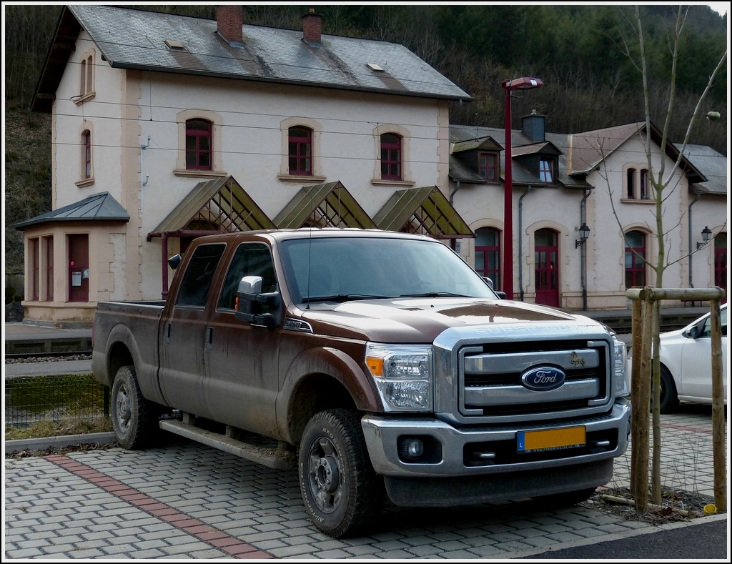 Auf einem Parkplatz beim Bahnhof Kautenbach stand dieser Ford F-250 Super Duty XLT. 06.03.2013.