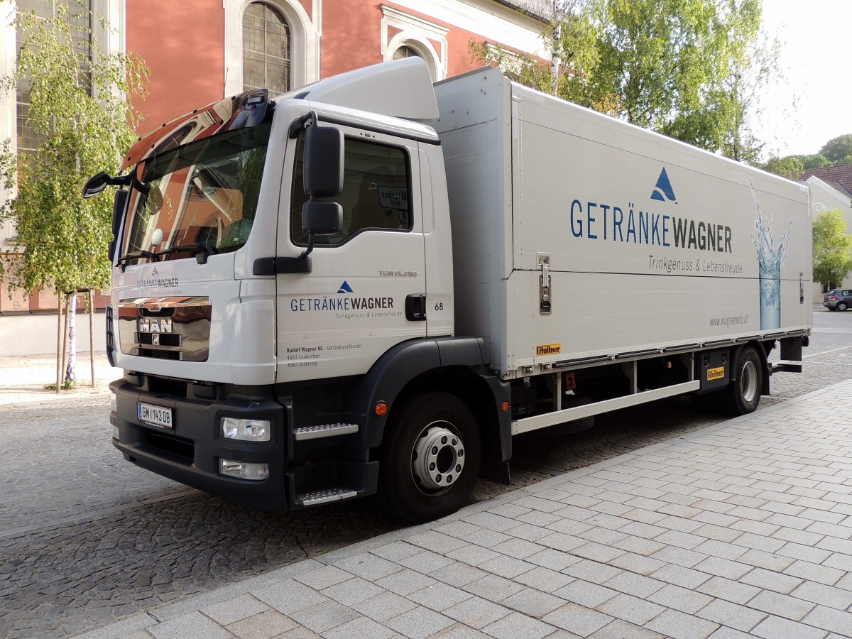 MAN TGM15.290 bei der Zustellung von erfrischenden Getränken; 130902