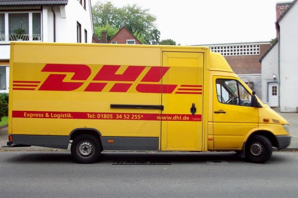 Mercedes Banz Sprinter 308 CDI mit Kastenaufbau der DHL in Hochlar Seitenansicht