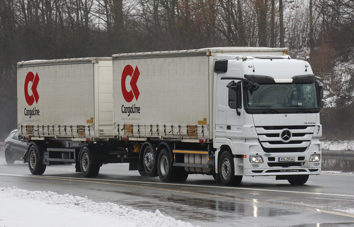 MB Actros MP3 2544 Hängerzug mit "Cargo Line"-Wechselbrücken unterwegs auf der BAB 6 bei Neuendettelsau, 04.02.2013