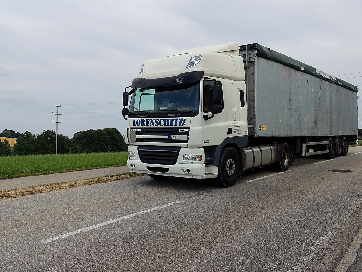 Vortmann Baumaschinen DAF XF 105.460 mit dunkel rotem Schubboden Sattelauflieger 15,09,2012 in Marl