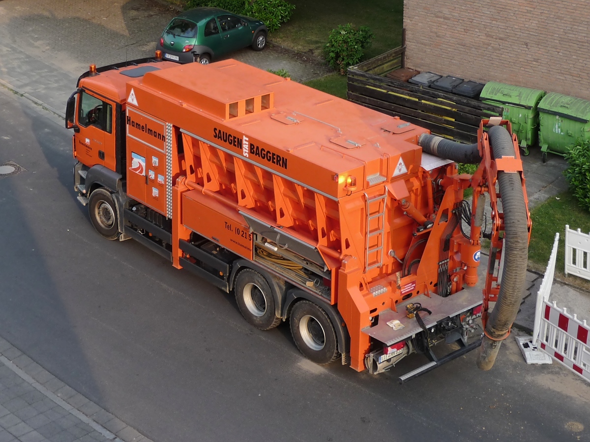 Die Alternative: Saugen statt Baggern, vor allem rund um eh schon brüchige Rohre, 30.5.12