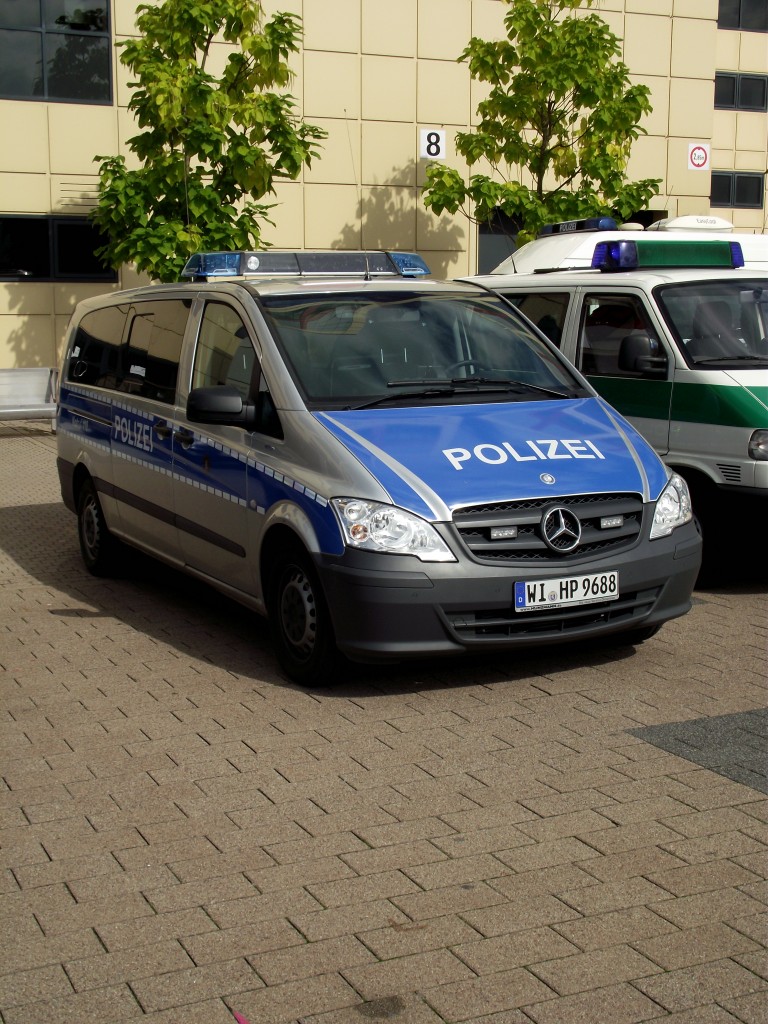 Acht Mercedes Benz Vito der Bereitschaftspolizei Mühlheim am 21.09.13 auf der IAA
