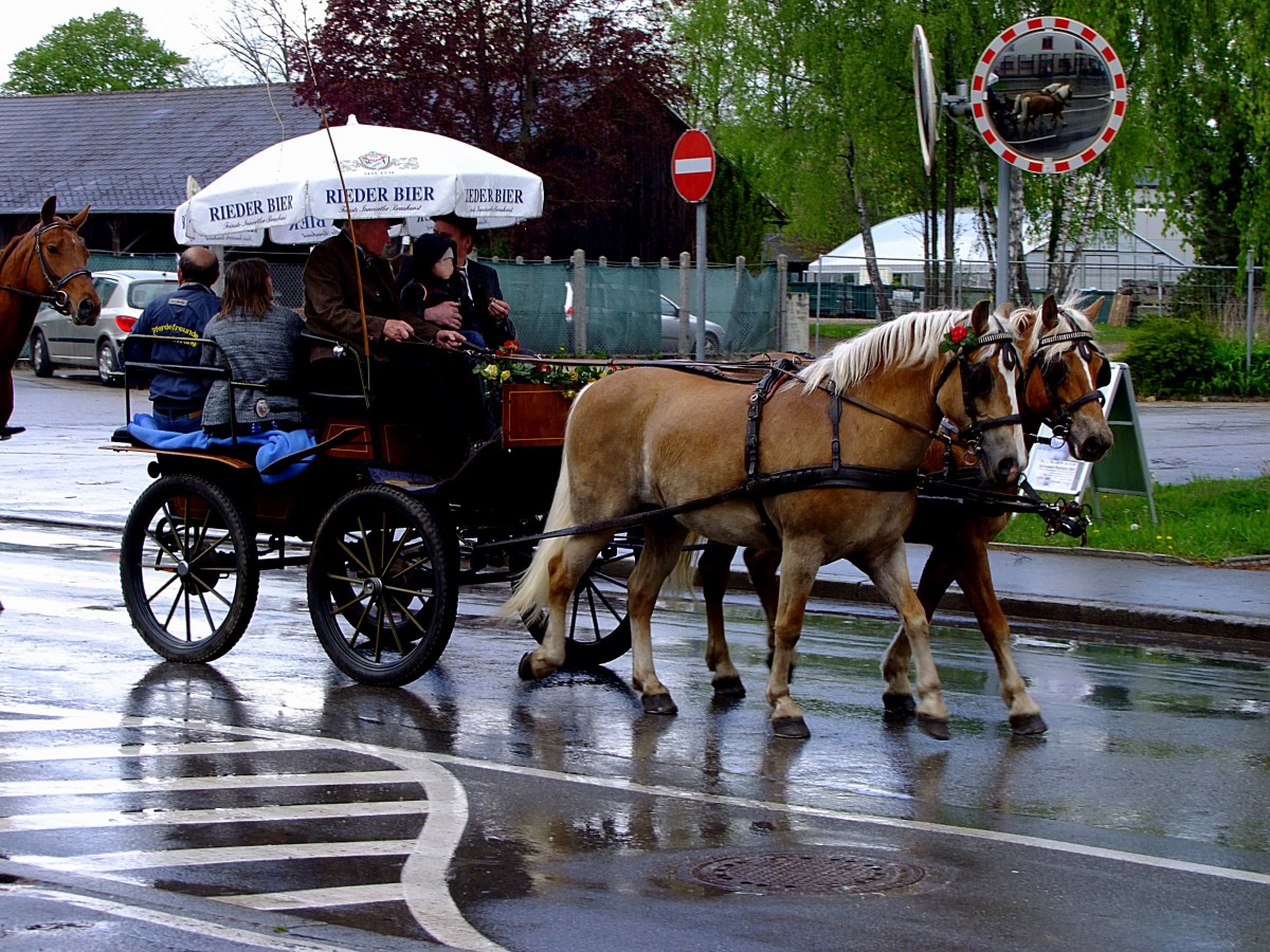 2PS als Haflinger-Zweiergespann anlässlich des Rieder-Pferdemarktes 2014; 140422