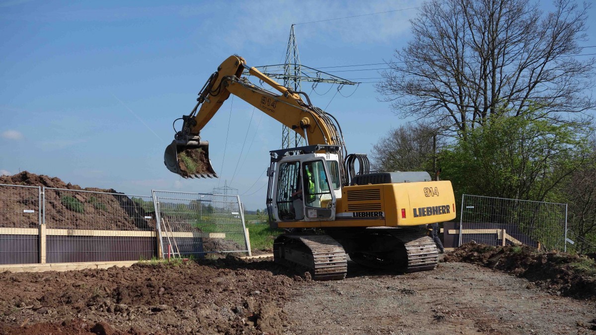 Liebherr 914 der Firma Bickardt-Bau eingesetzt an einer Baustelle bei Fulda-Bernhards im April 2014