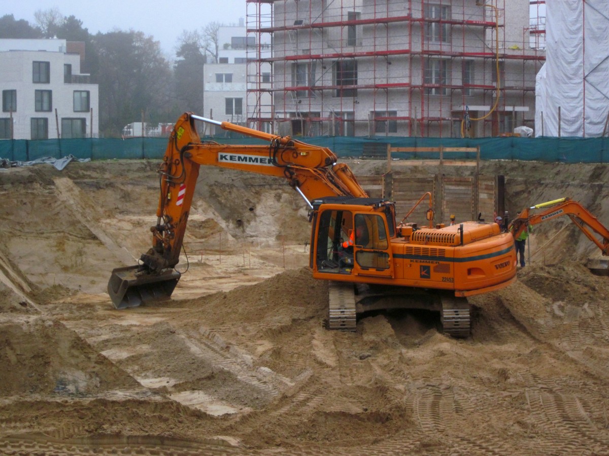 Volvo Kettenbagger bei "Feinarbeiten" auf einer Baustelle in Berlin-Dahlem am 25.11.2014