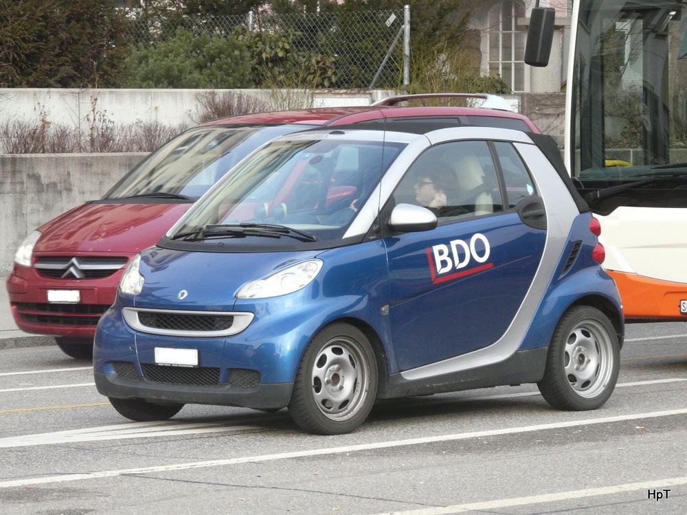 Blauer/Grauer Werbe Smart unterwegs in der Stadt Solothurn am 25.01.2014