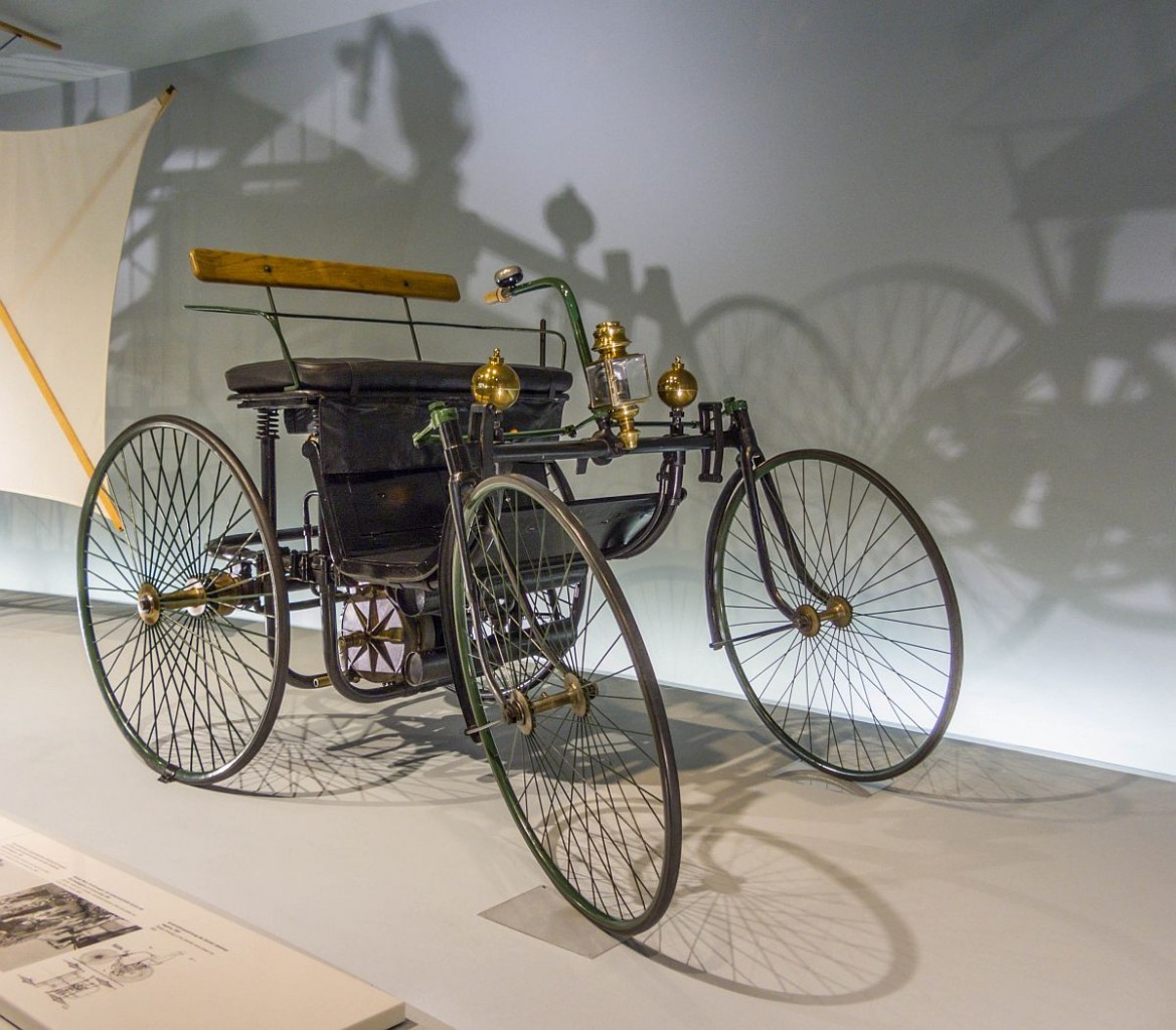 Daimler Stahlradwagen aus dem Jahr 1889 mit 1,5Ps Leistung. Foto: Mercedes-Benz Museum: 30.11.2013
