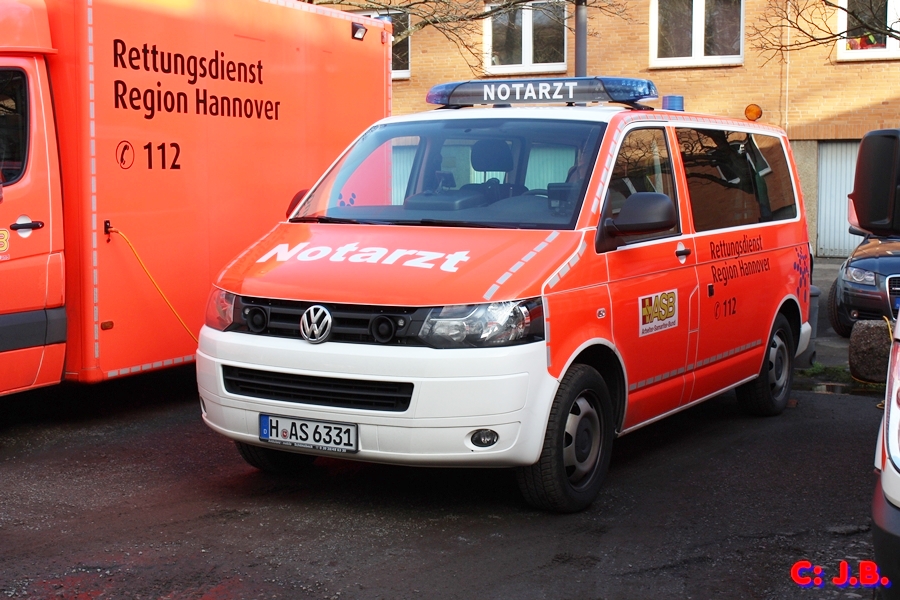 Dieses Notarzteinsatzfahrzeug des ASB VW T5 ist erst 3 Wochen alt. Standort ist Robert-Koch-Krankenhaus in Gehrden/Region Hannover. Aufgenommen am 11.01.2014