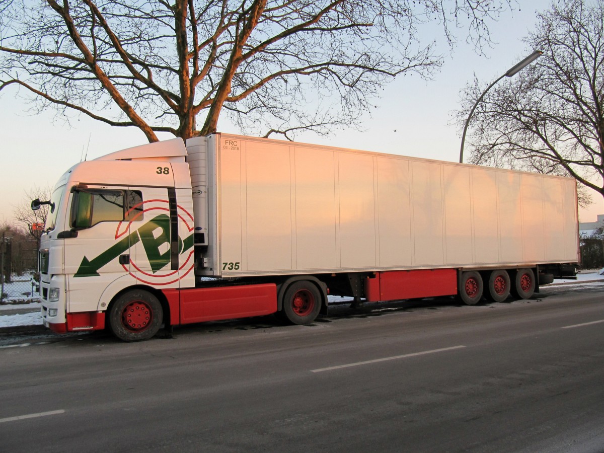 MAN TGX XLX Kühl-Sattelzug am 25.01.2014 in Bln.-Tempelhof "abgestellt".