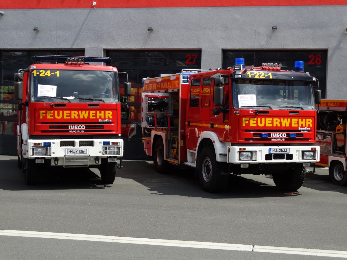 IVECO/Magirus TLF 24/50 (Florian Hanau 1-24-1) und TLF 20/28 (Florian Hanau 1-22-) am 01.06.14 beim Tag der Offenen Tür der Feuerwehr Hanau Mitte