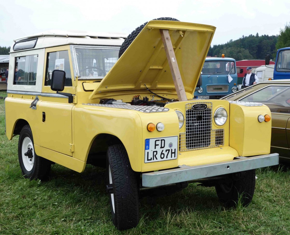 Land Rover steht bei der Oldtimerausstellung in Ebersburg, Juni 2014