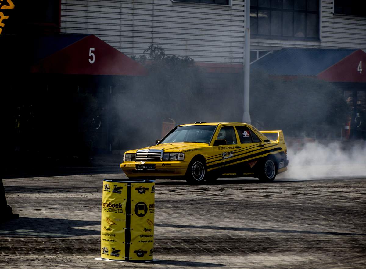 Driftender Mercedes-Benz 190E, fotografiert auf dem Auto motor und Tuning Show, ende März 2014.
