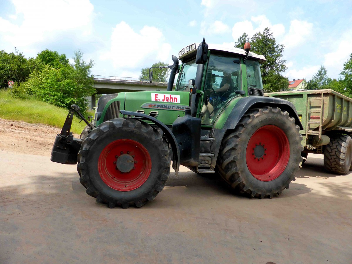 Fendt 818 der Firma JEHN wartet auf den nächsten Fahrauftrag in 36100 Petersberg-Marbach, Juni 2014 (im Hintergrund mein Cabrio)