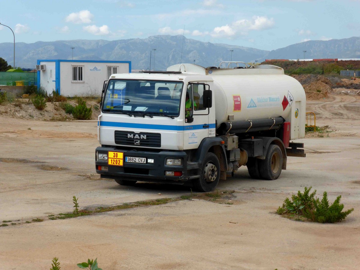 MAN als Tankfahrzeug verlässt eine Baustelle in Palma/Mallorca im Mai 2014