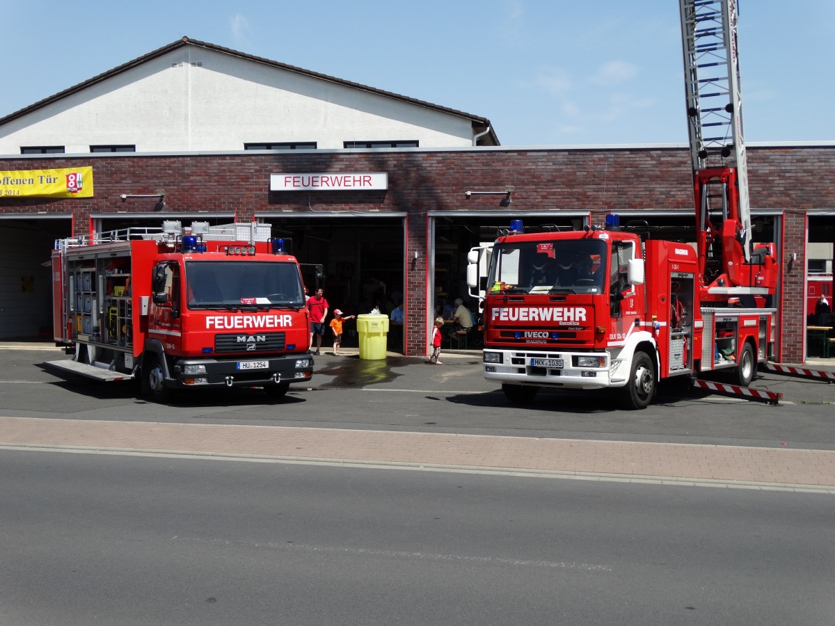 MAN GW-W (Florian Maintal 1-55-1) und IVECO/Magirus DLK 23/12 (Florian Maintal 1-30-1) am 08.06.14 beim Tag der Offenen Tür der Feuerwehr Maintal