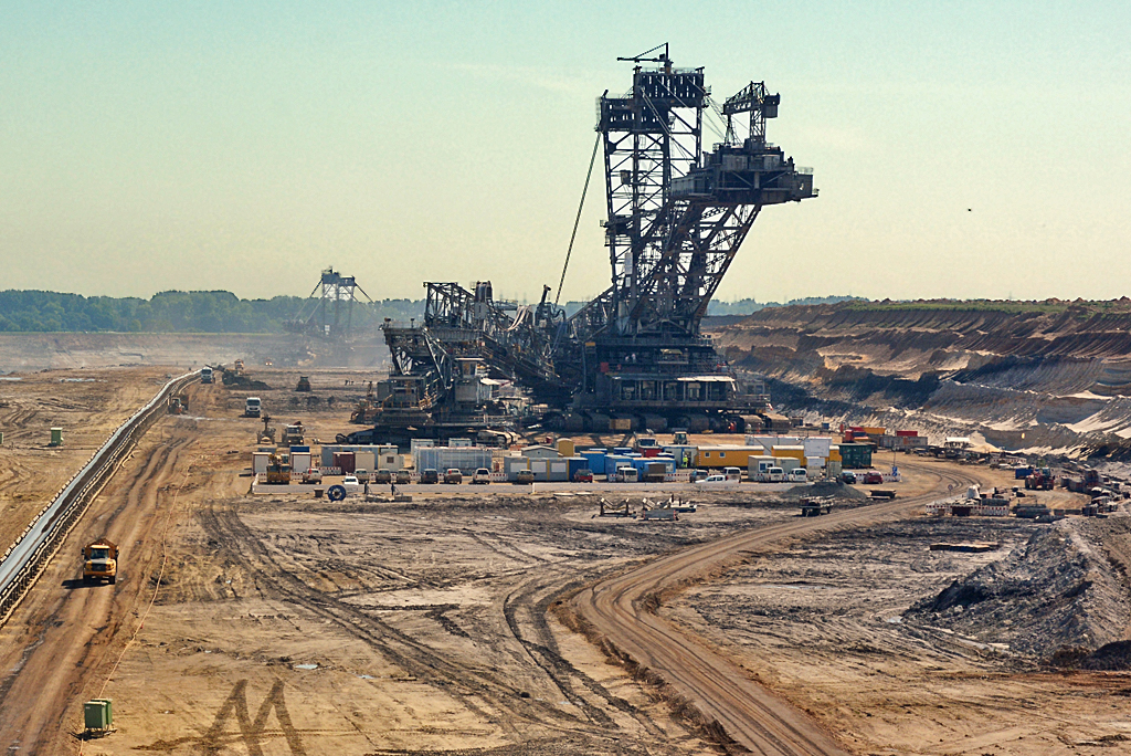 Schaufelradbagger im RWE-Tagebau-Inden. Von den 5 Baggern im Tagebau Inden werden jährlich ca. 22 Mio. t Braunkohle gefördert, die ausschließlich im Kraftwerk Weisweiler "verheizt" werden. 19.05.2014