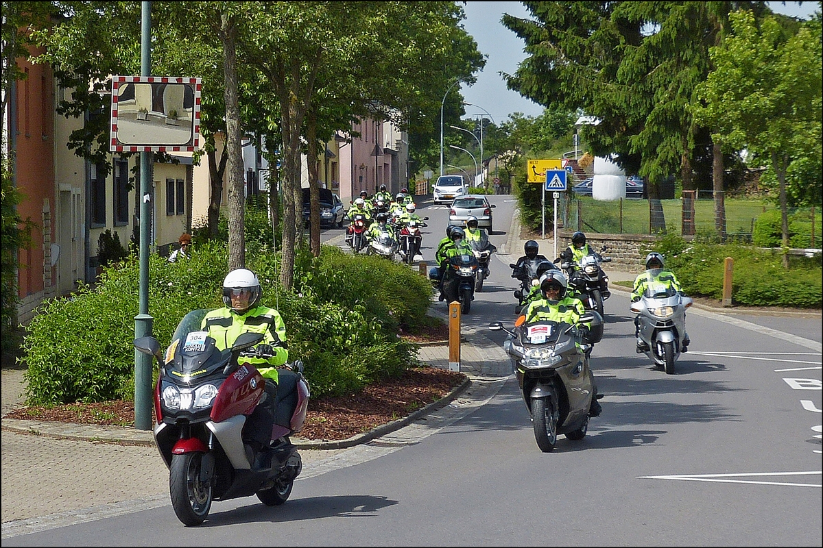 . Am 07.06.2014 ist diese Motorrad Gruppe von Reportern unterwegs zum Startort einer Etappe der Luxemburg Rundfahrt.
