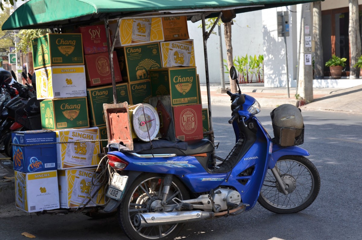 Biertransport, Honda Dream, Chiang Mai, Nord-Thailand, 23.01.2014
