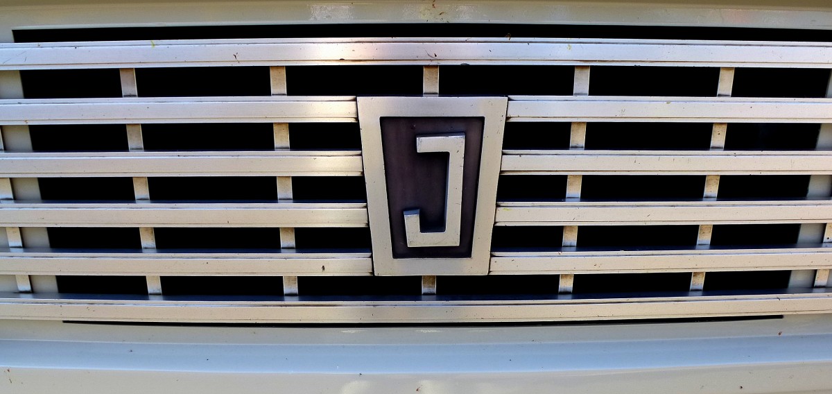 Jonckheere, Kühleremblem an einem Oldtimerbus, der belgische Hersteller von Reise-und Linienbussen baute 1922 die ersten Buskarosserien, Juni 2014