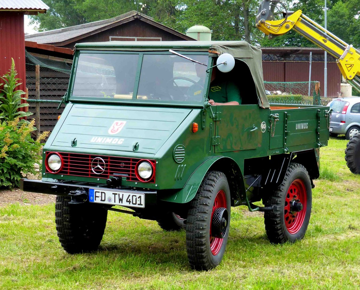 Unimog ausgestellt beim Ortsjubiläum von Unterweisenborn, Juni 2014