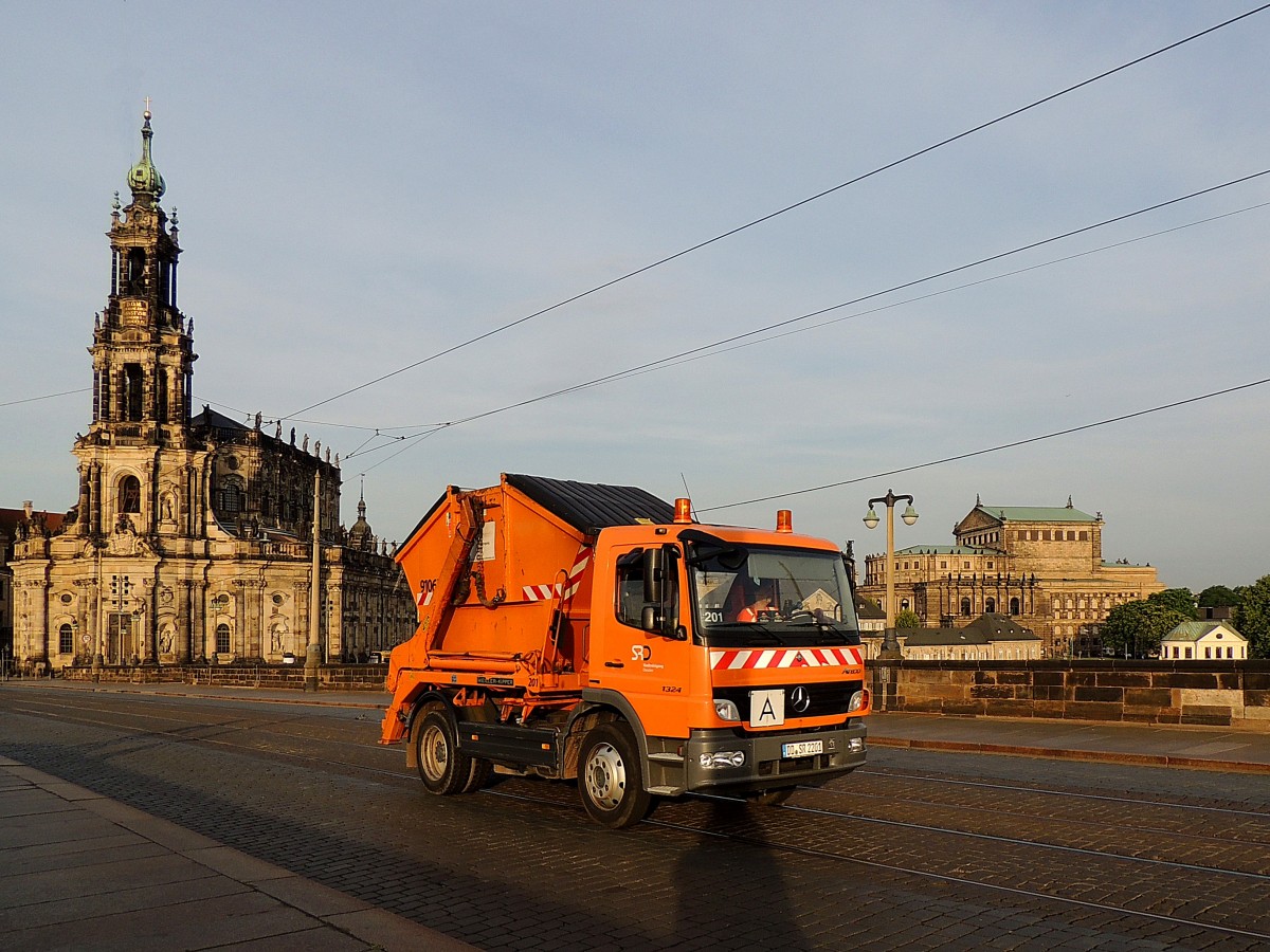ATEGO-1324, mit Absetzcontainer auf der Augustinerbrücke zu Dresden; 140610