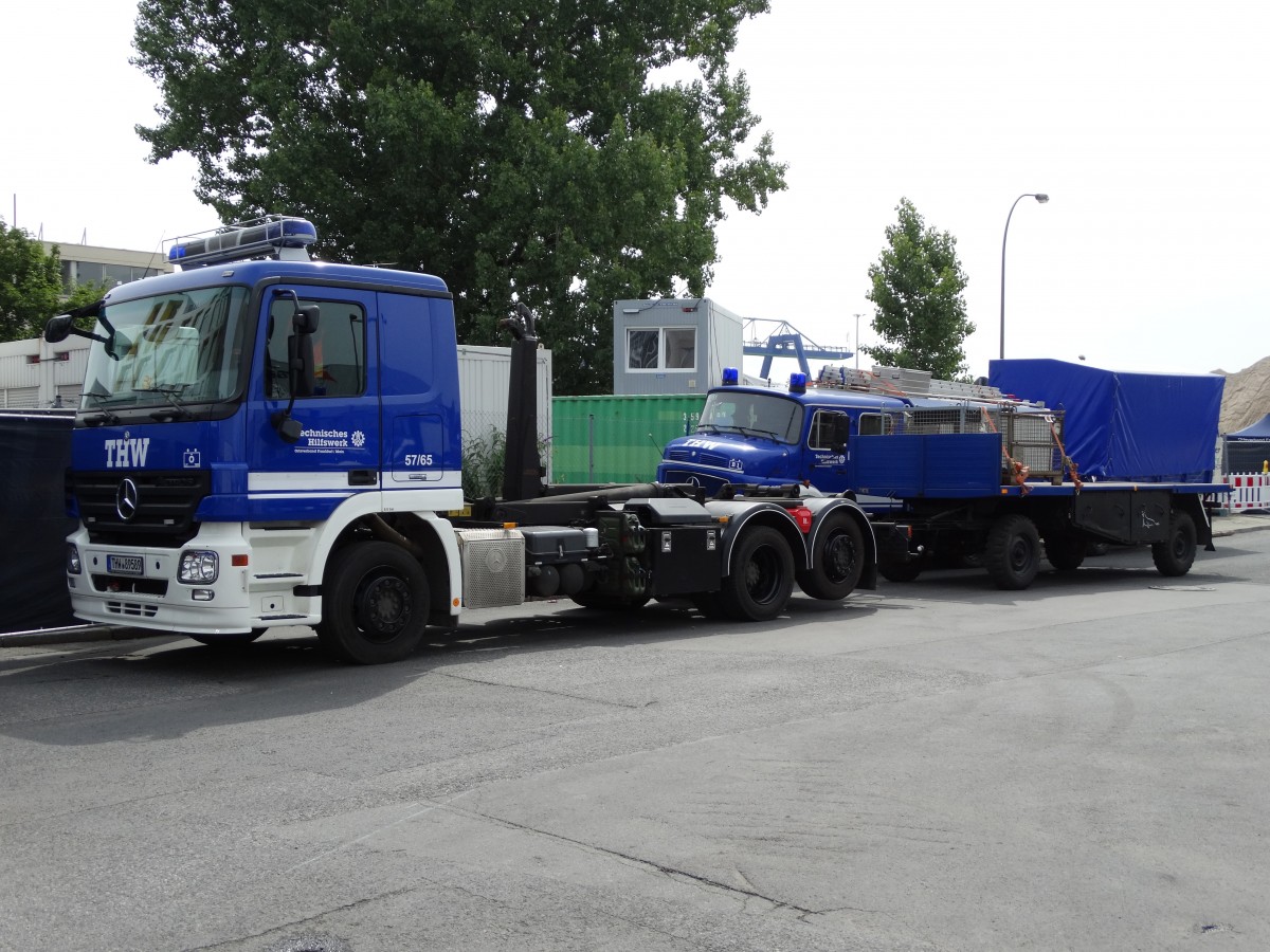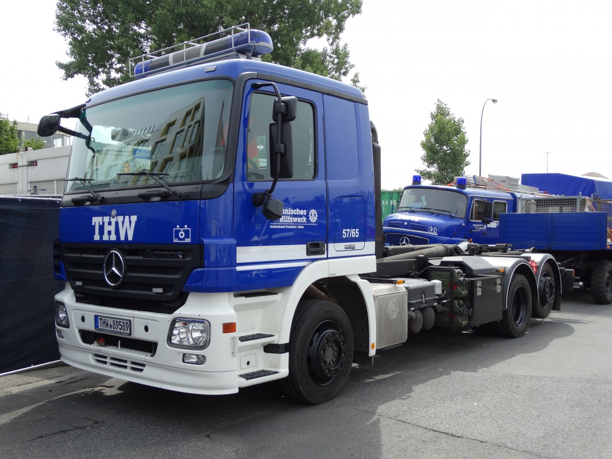Mercedes Benz Actros Wechsellader des THW am 28.06.14 in Frankfurt beim Osthafen Festival 2014