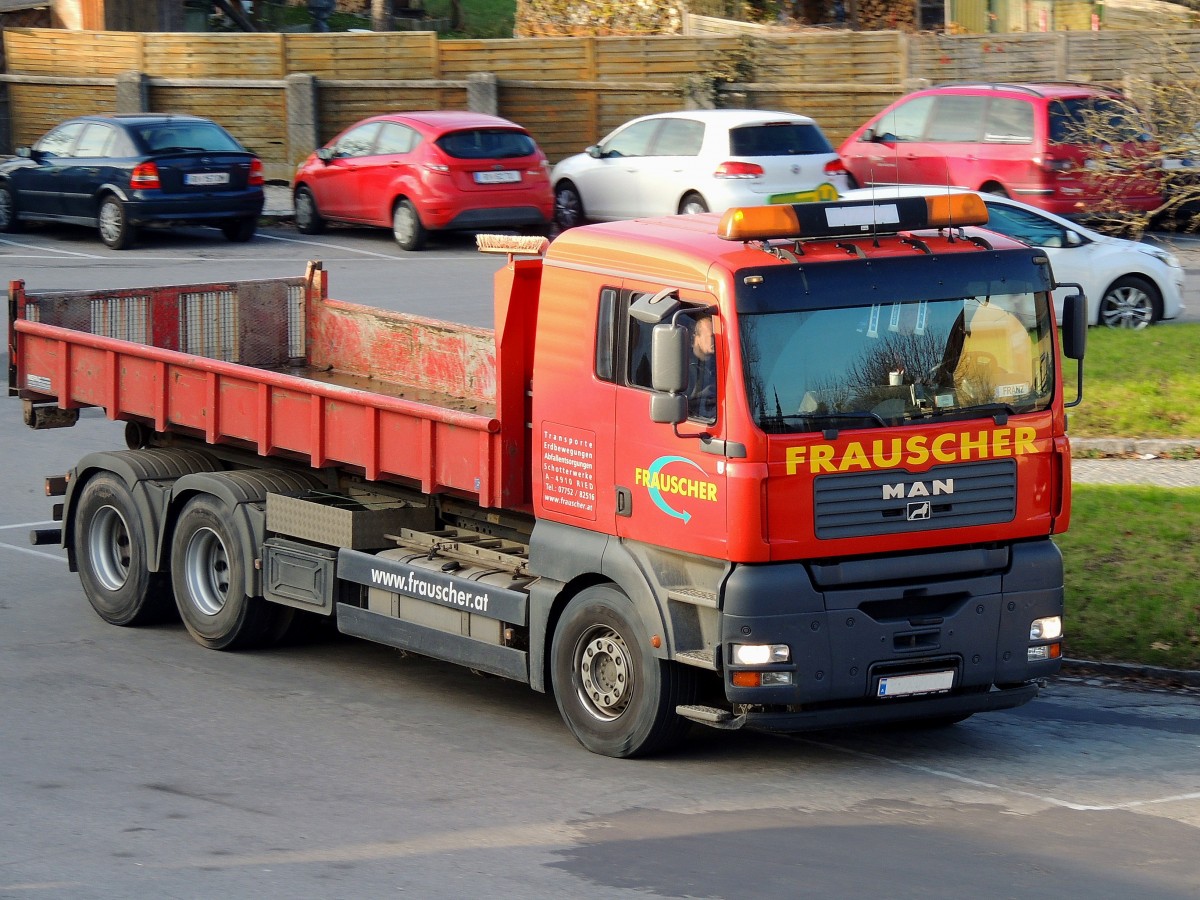 MAN von Frauscher ist mit leerem Wechselauflieger zum nächsten Verwendungsort unterwegs; 141121