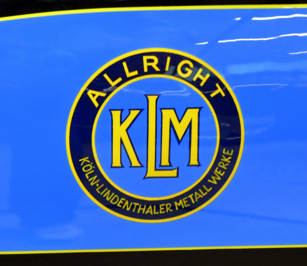 KLM Köln-Lindenthaler Metallwerke, Tankemblem an einem Oldtimer-Motorrad, Nov.2014